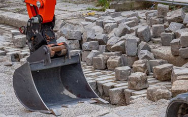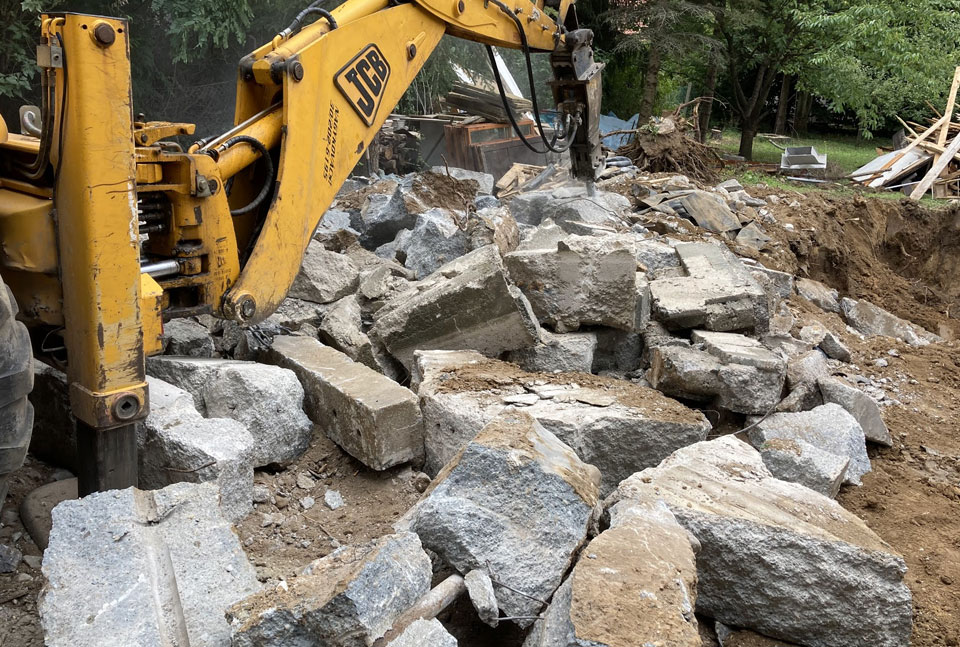 Régi térburkolatok, betonozott felületek és fölöslegessé vált kerti kisépületek / műtárgyak bontása és elszállítása.