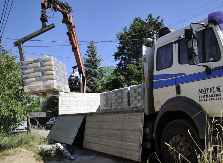 Töltőanyagok építési területre történő beszállítása (osztályozott murvák, zúzott kő, osztályozott sóderek, töltőföld, termőföld) - ezek terítése, valamint gépi tömörítése.